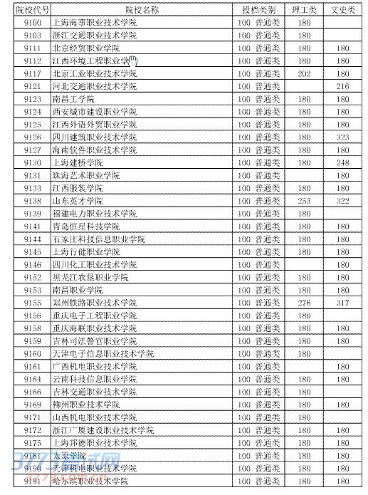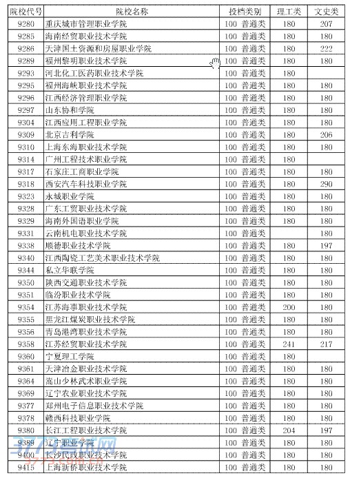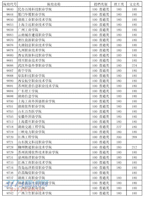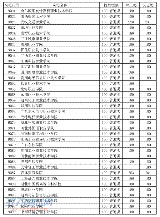 2014湖北高考第四批高职高专一院校征集志愿投档分数线