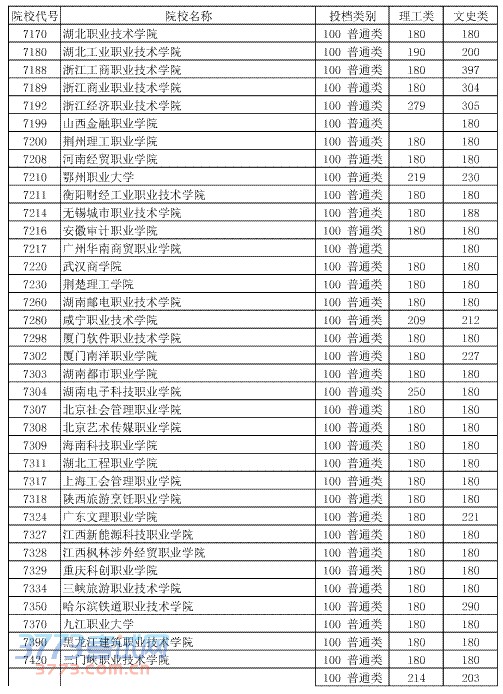 2014湖北高考高职统考第四批专科一征集志愿院校及计划