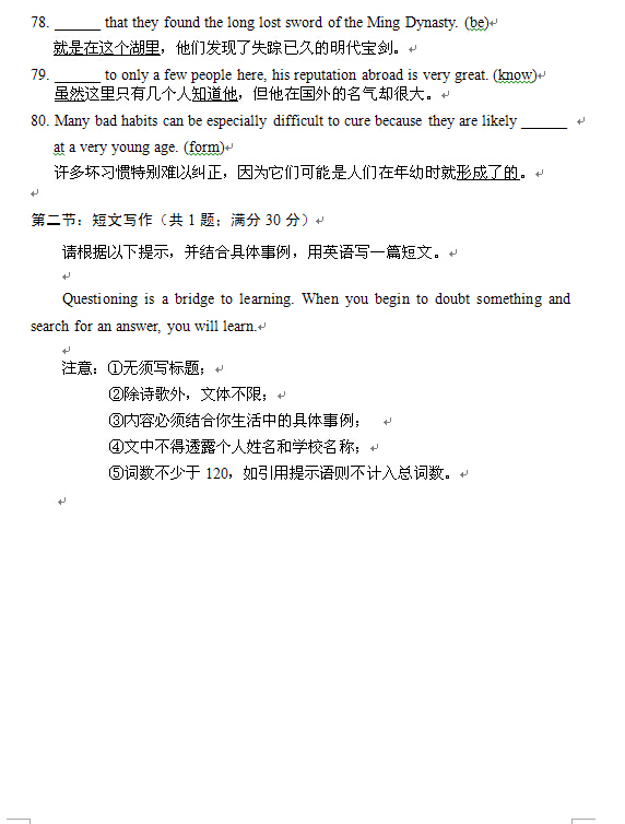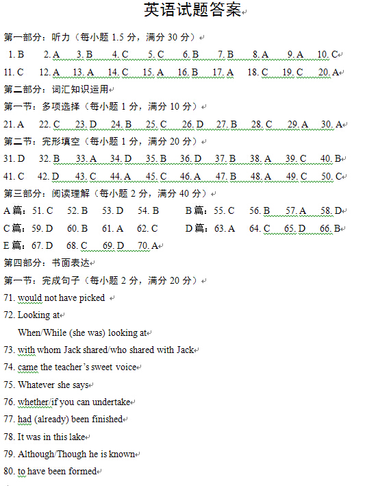 2015湖北高考英语试题及答案发布