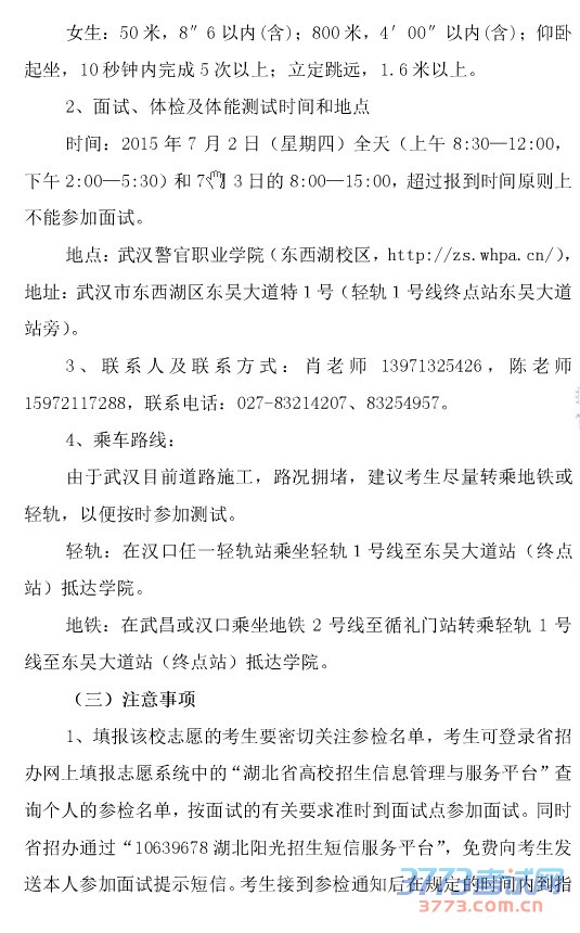 2015年湖北省司法院校招生确定参加面试体检名单原则和有关注意事项