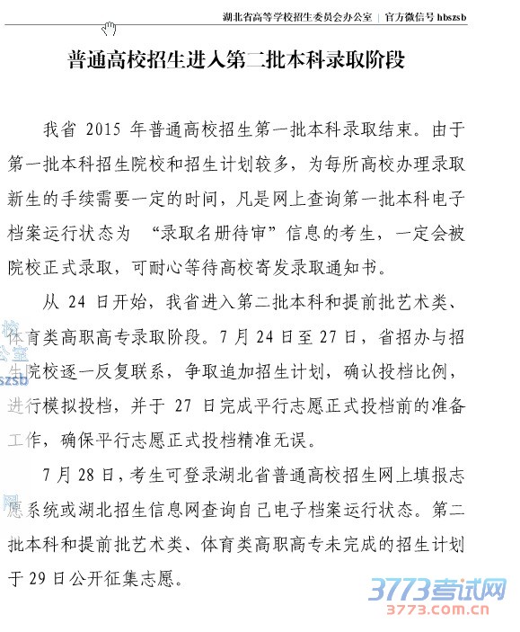 7月28日,考生可登录湖北省普通高校招生网上填报志愿系统或湖北招生信息网查询自己电子档案运行状态。第二批本科和提前批艺术类、体育类高职高专未完成的招生计划将于29日公开征集志愿。
