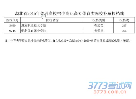 湖北省2015年普通高校招生高职高专体育类院校补录投档线