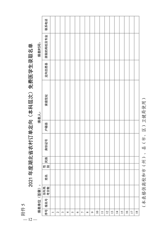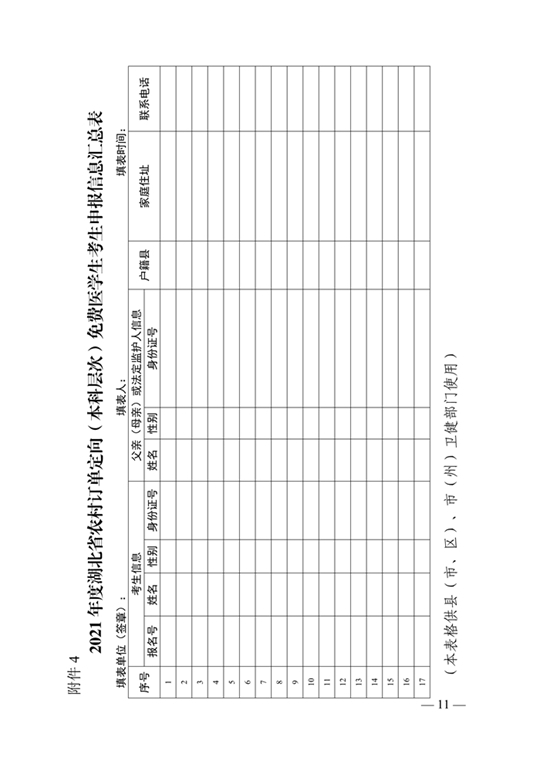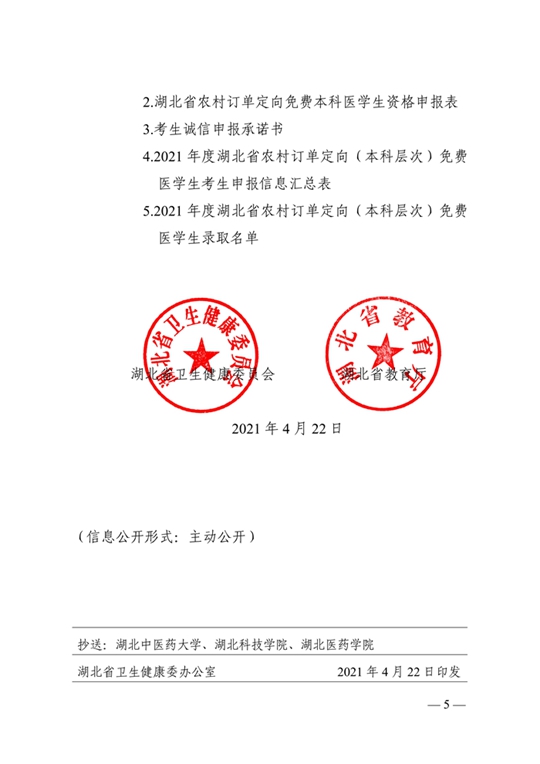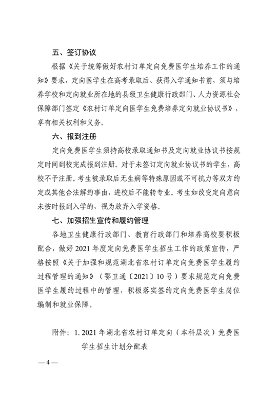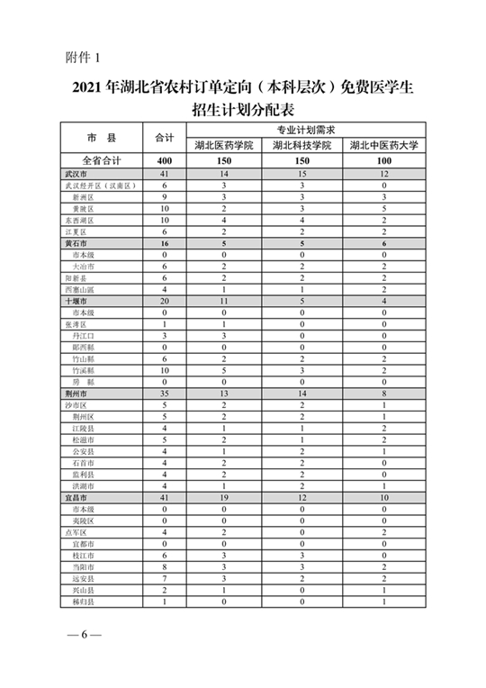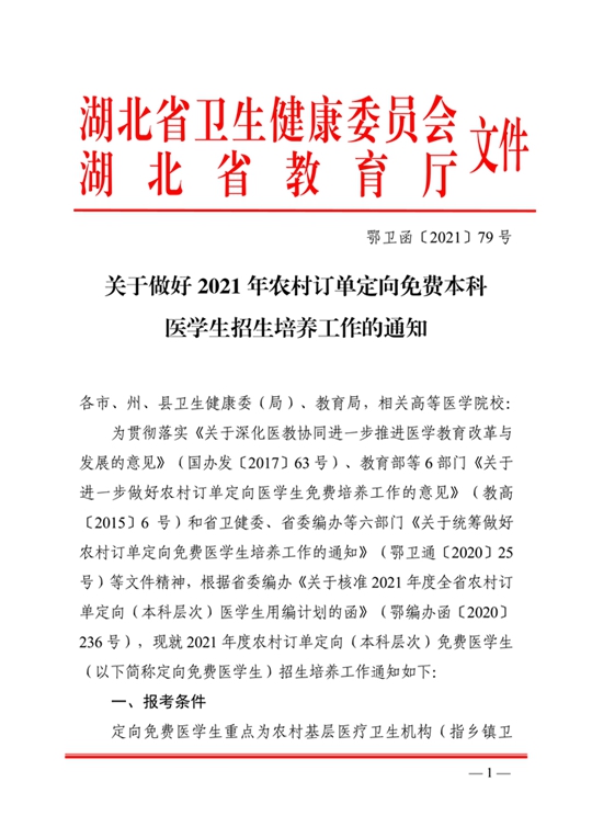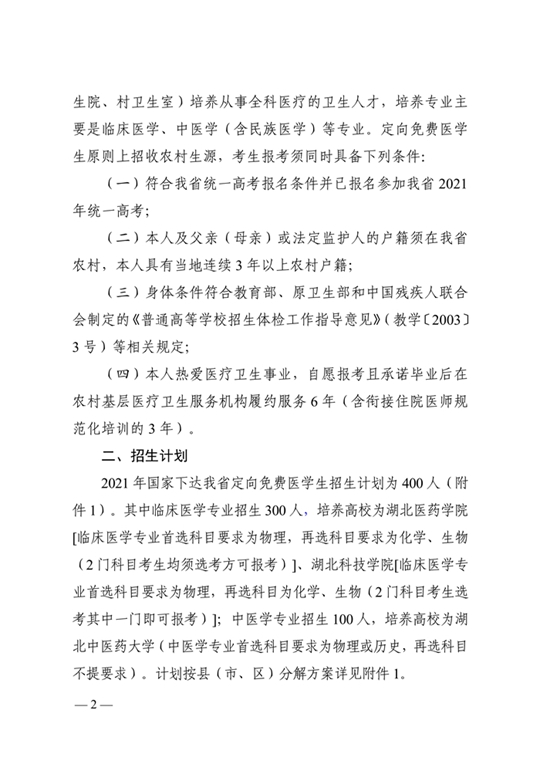 2021湖北农村订单定向免费本科医学生招生培养工作的通知