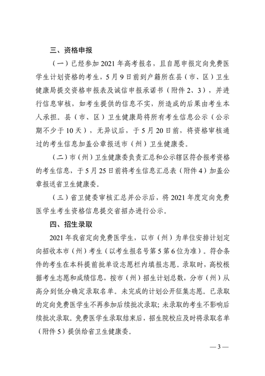 关于做好2021年农村订单定向免费本科医学生招生培养工作的通知 点击查看