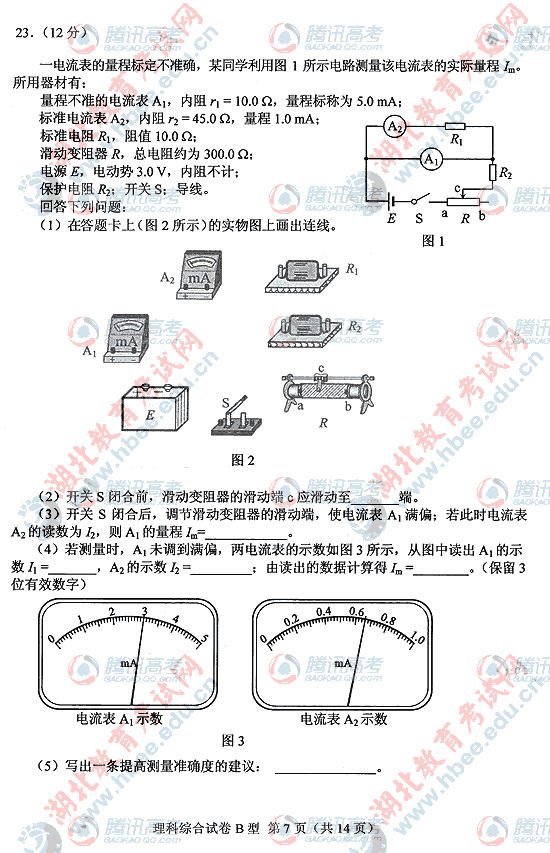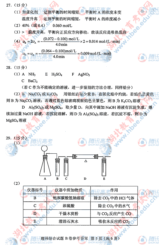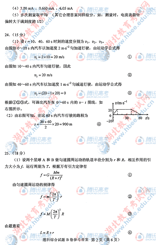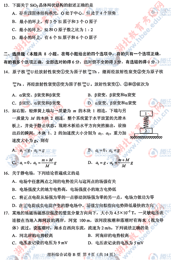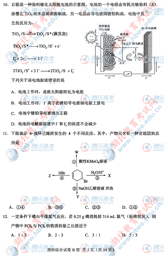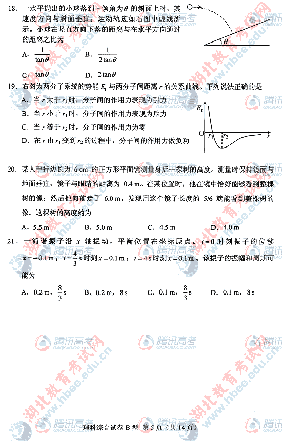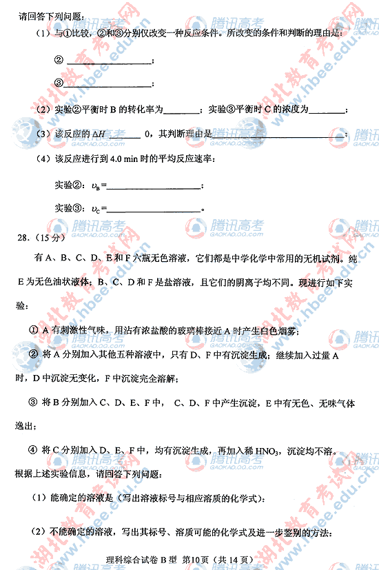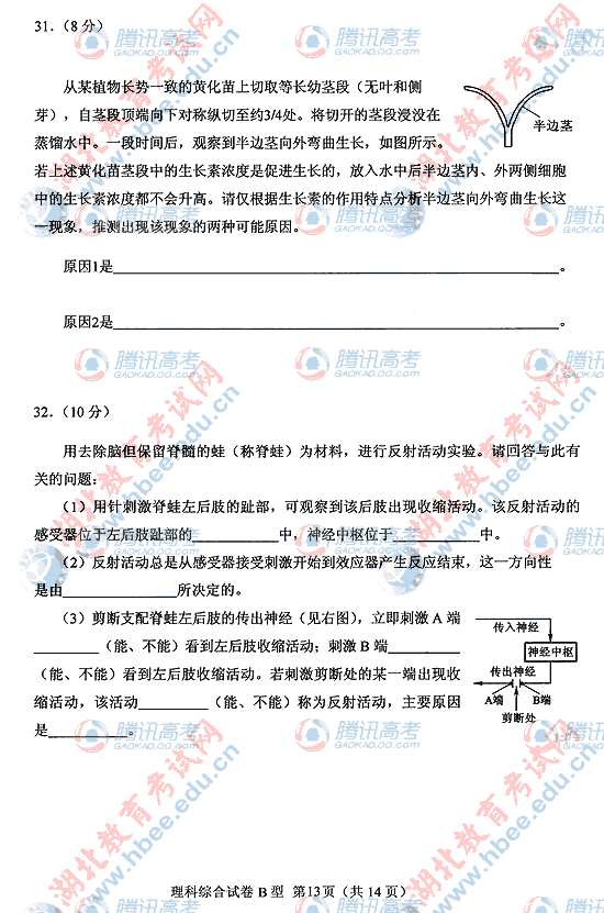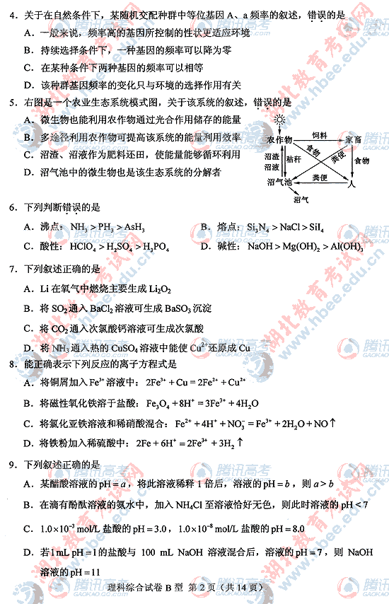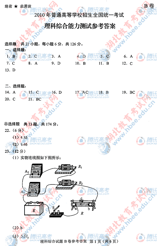 2010年湖北高考理综B试题及答案