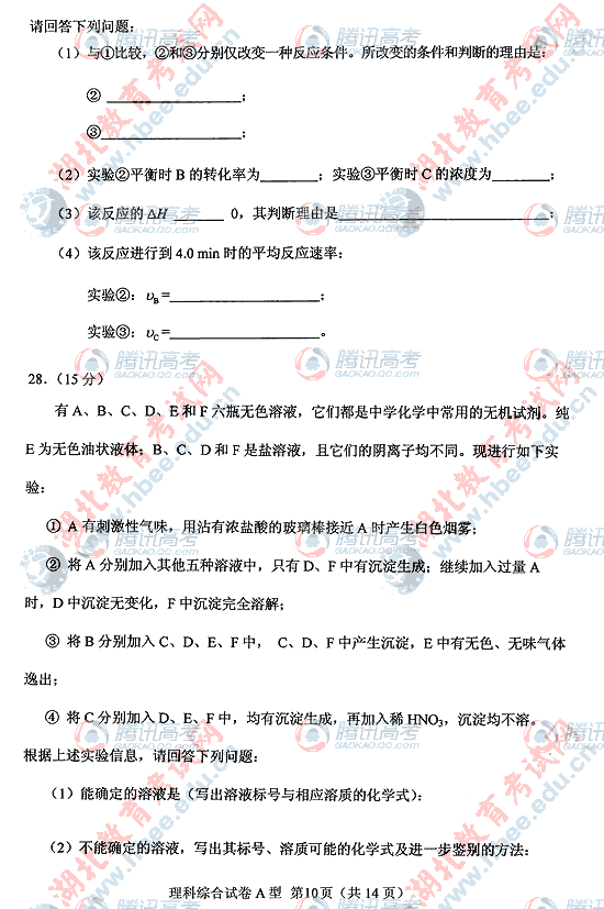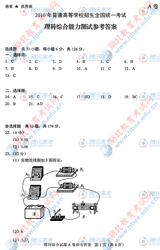 2010年湖北省高考二本艺术本科三中职本科征集志愿草表