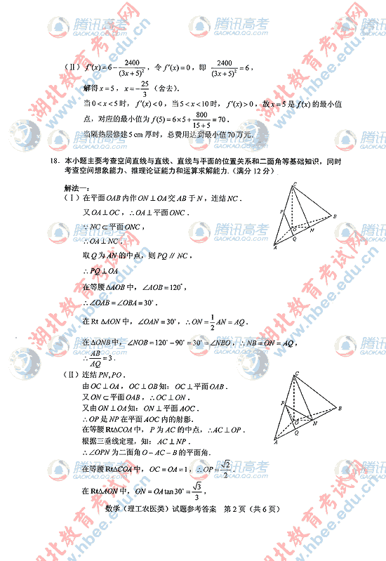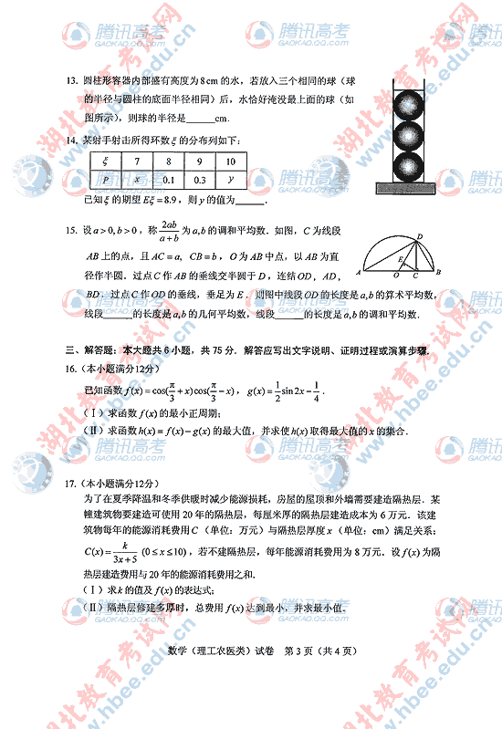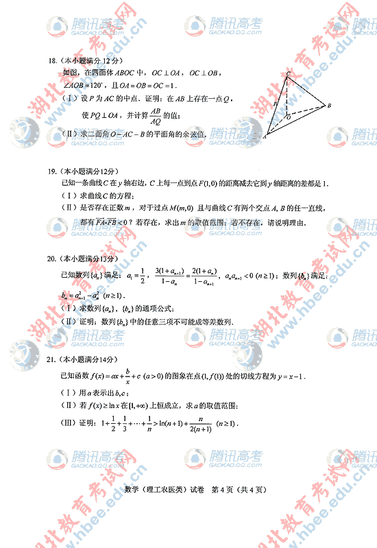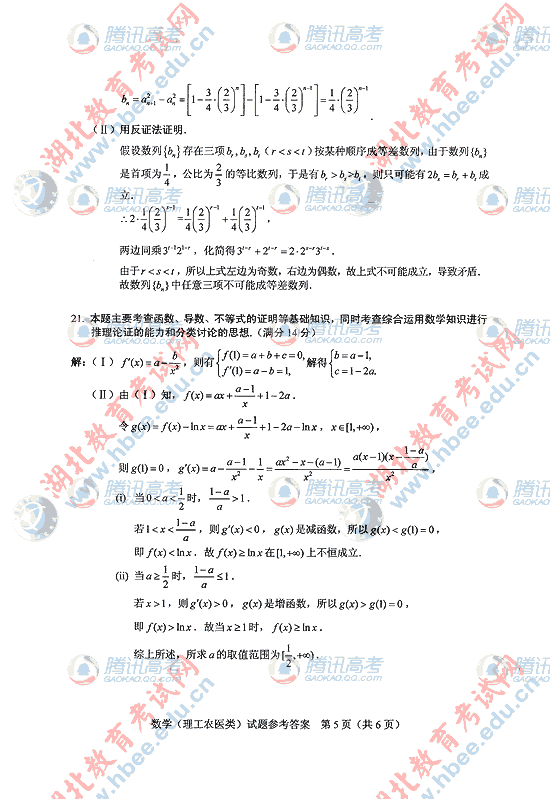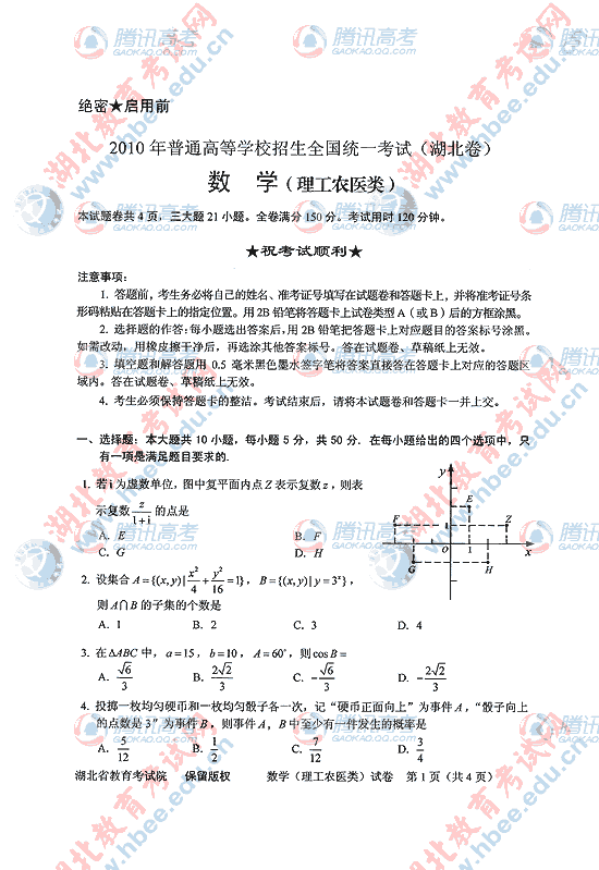 2010年湖北高考理数试题及答案