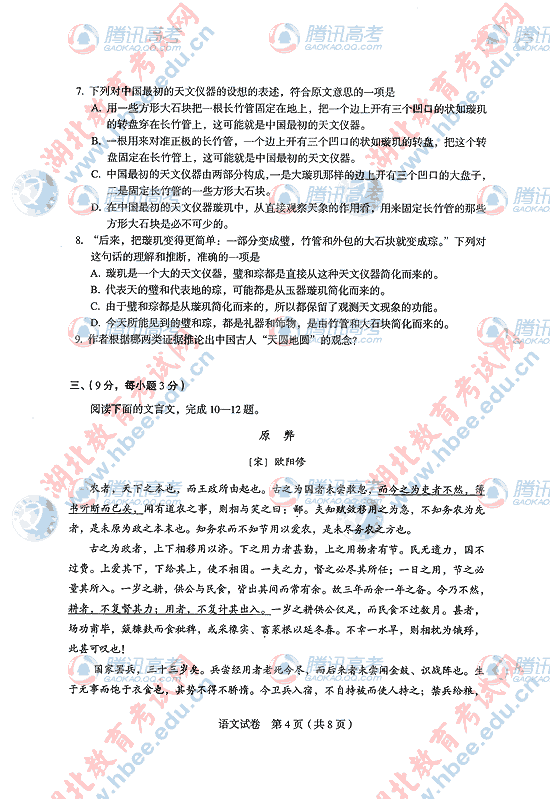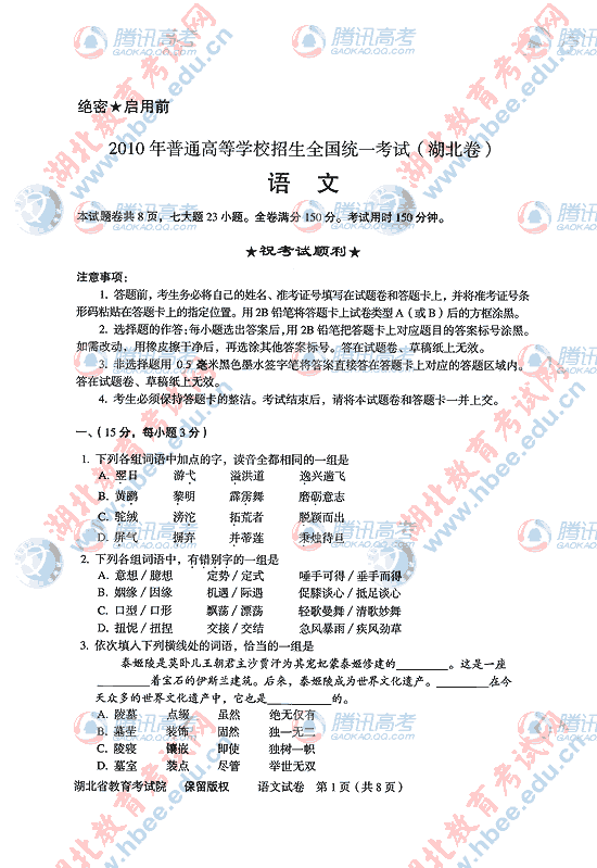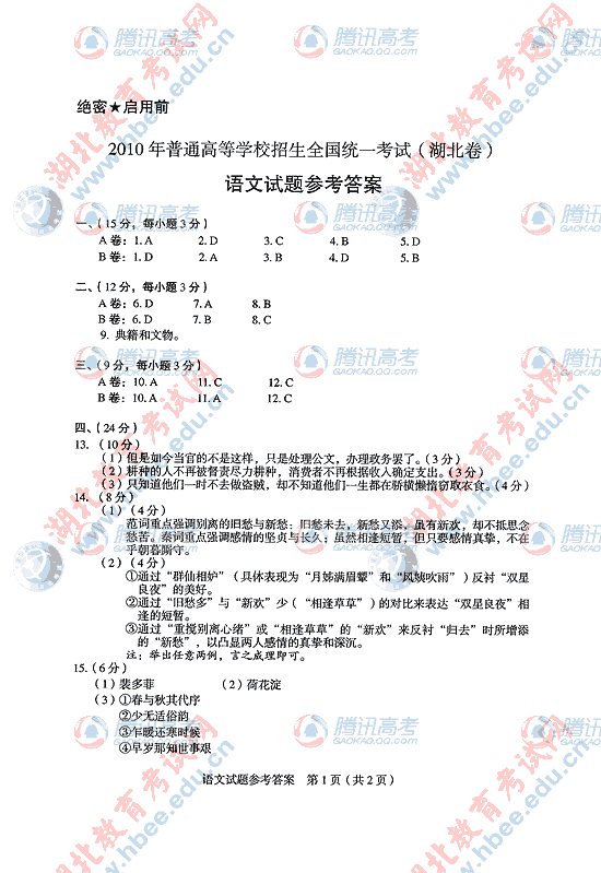 2010年湖北省高考二本艺术本科三中职本科征集志愿草表