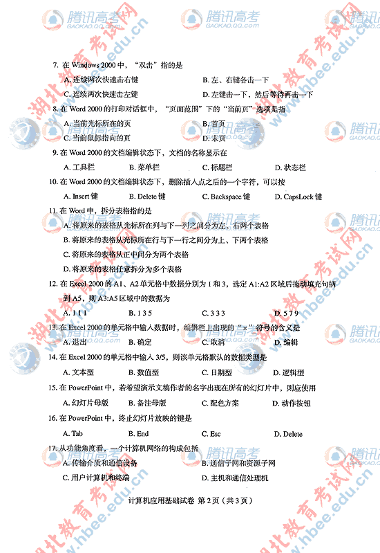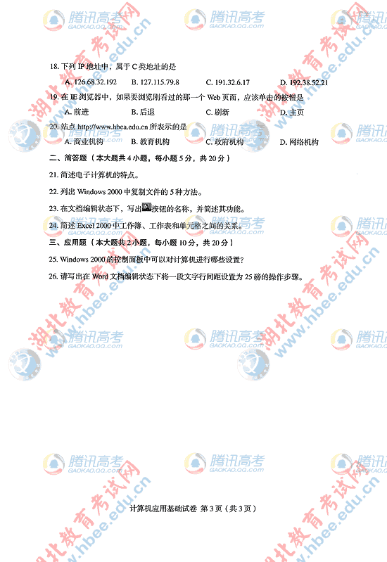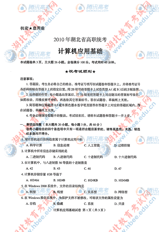 2010年湖北省高考二本艺术本科三中职本科征集志愿草表
