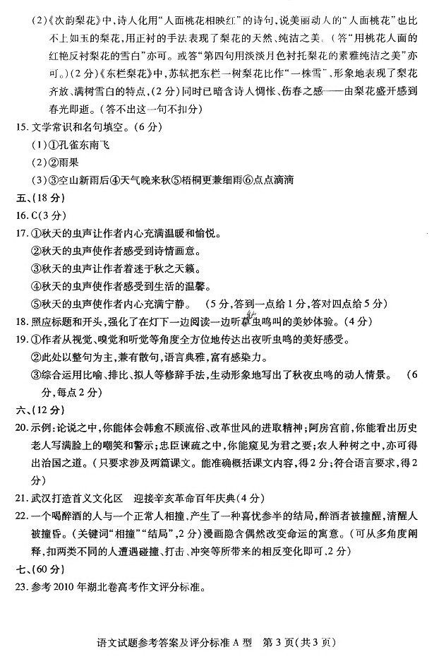 2011湖北武汉四月调考语文试题及答案(a卷)
