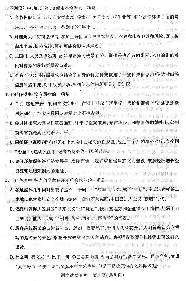 2011湖北武汉四月调考语文试题及答案(B卷)