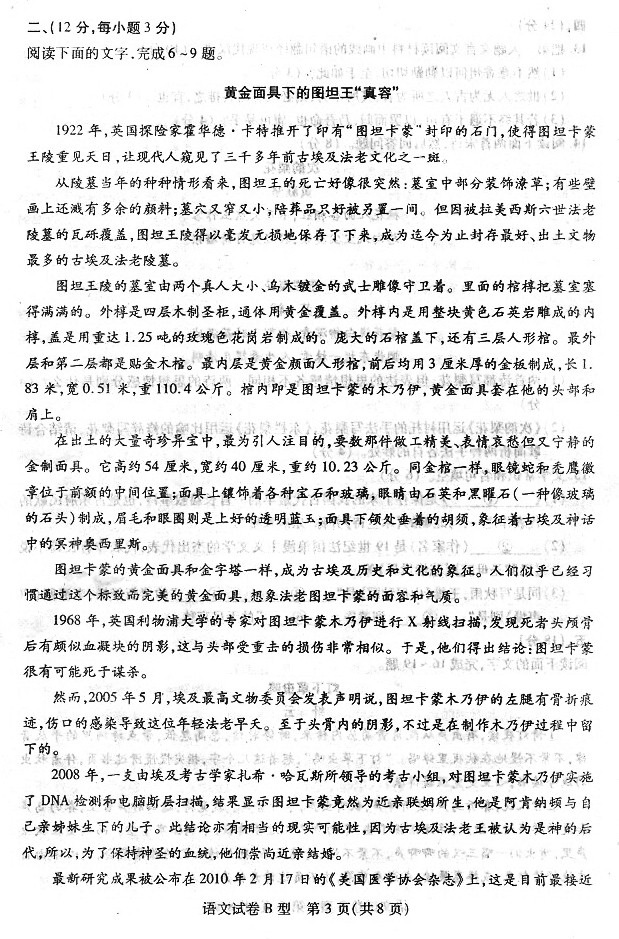 2011湖北武汉四月调考语文试题及答案(B卷)