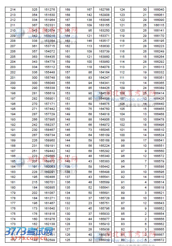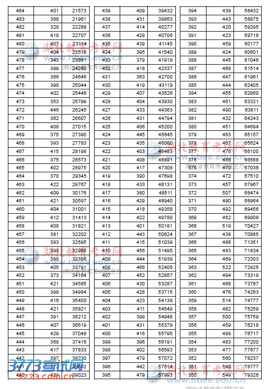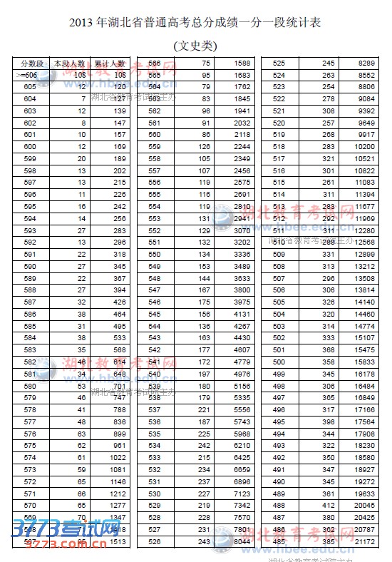 2013湖北高考一分一段统计表(文科)