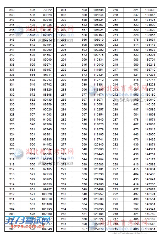 2013年湖北高考一分一段统计表(理工类