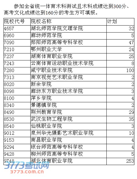 2013湖北提前批艺术专科补录征集志愿院校及计划数