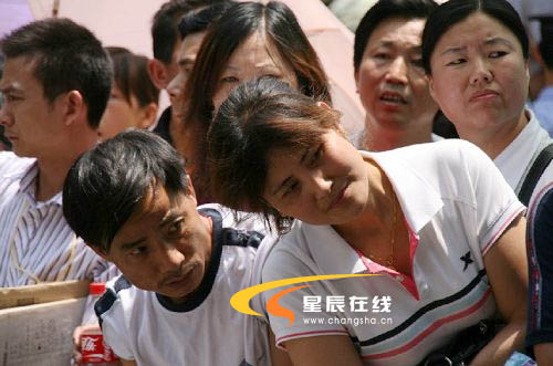 7日上午考试快要结束了 考场外家长望眼欲穿迎接自己的孩子