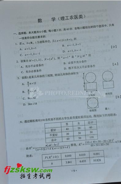 2011年湖南数学(理工农医类)高考试卷及参考答案