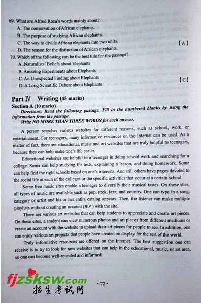 2011年湖南高考英语试卷及参考答案