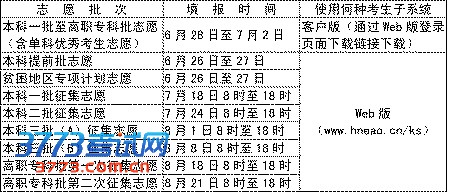 各批次志愿填报时间