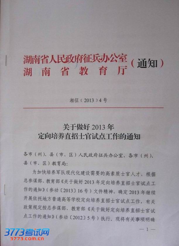 2013年湖南定向培养直招士官试点工作的通知2013年湖南定向培养直招士官试点工作的通知2013年湖南定向培养直招士官试点工作的通知2013年湖南定向培养直招士官试点工作的通知2013年湖南定向培养直招士官试点工作的通知