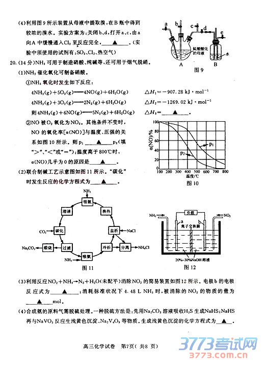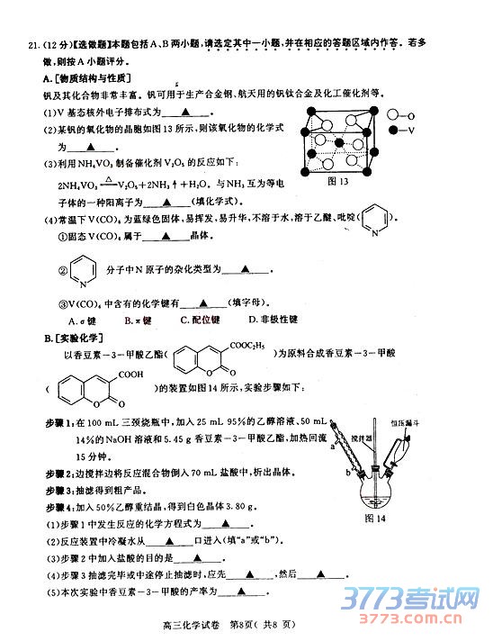 2016乌鲁木齐二模民语系化学答案及评分标准
