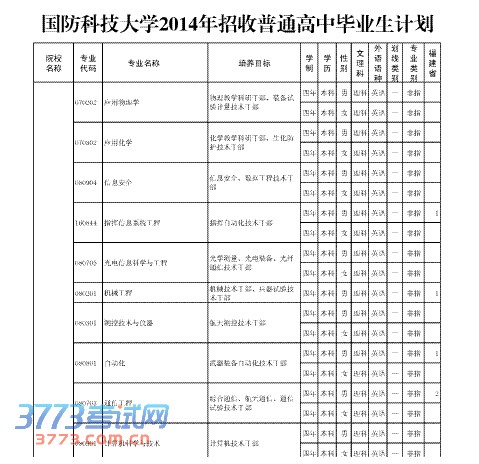国防科学技术大学2014年招生计划查询