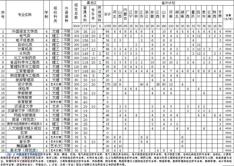2014年绥化学院招生计划(艺术类专业在本省文理兼招,在其他省份只招文科考生)