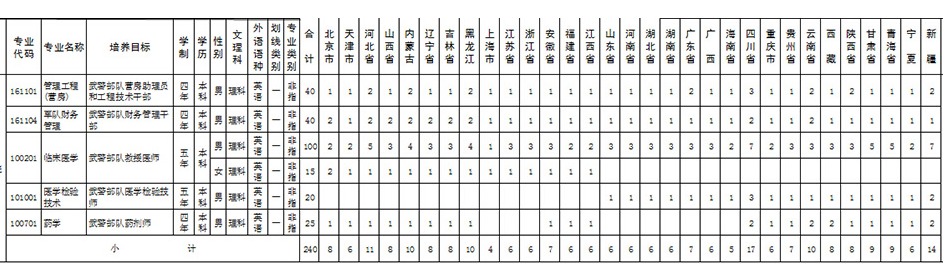 2015年武警后勤学院招生计划