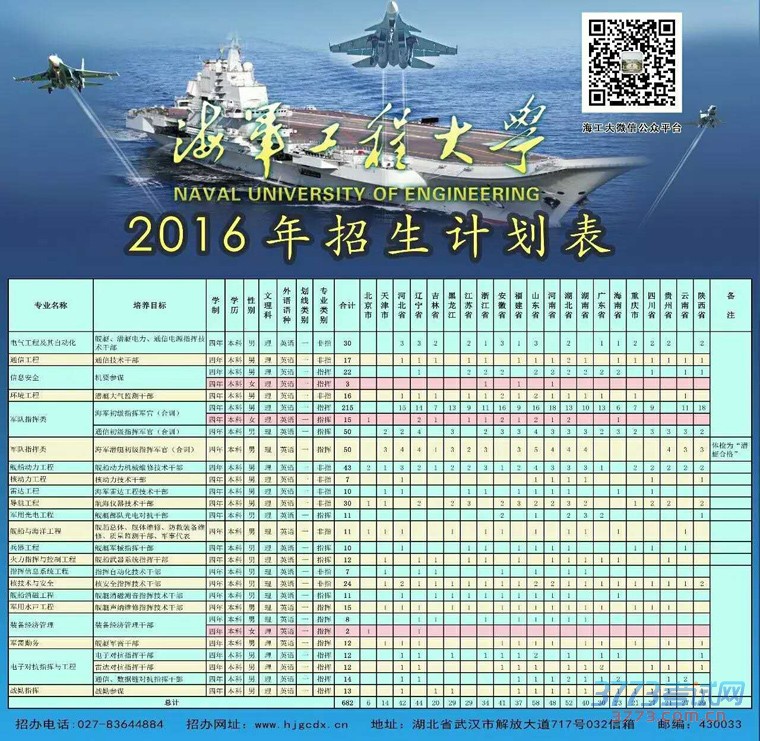 【重磅】海军工程大学2016年招生计划公布,欢迎加入“海军军官的摇篮”!
