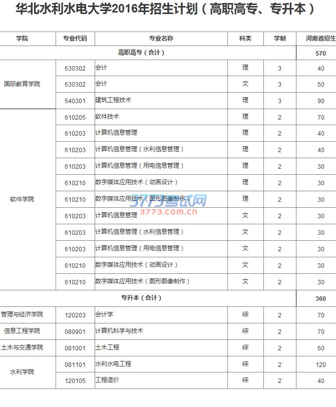 华北水利水电大学2016年招生计划(高职高专、专升本)