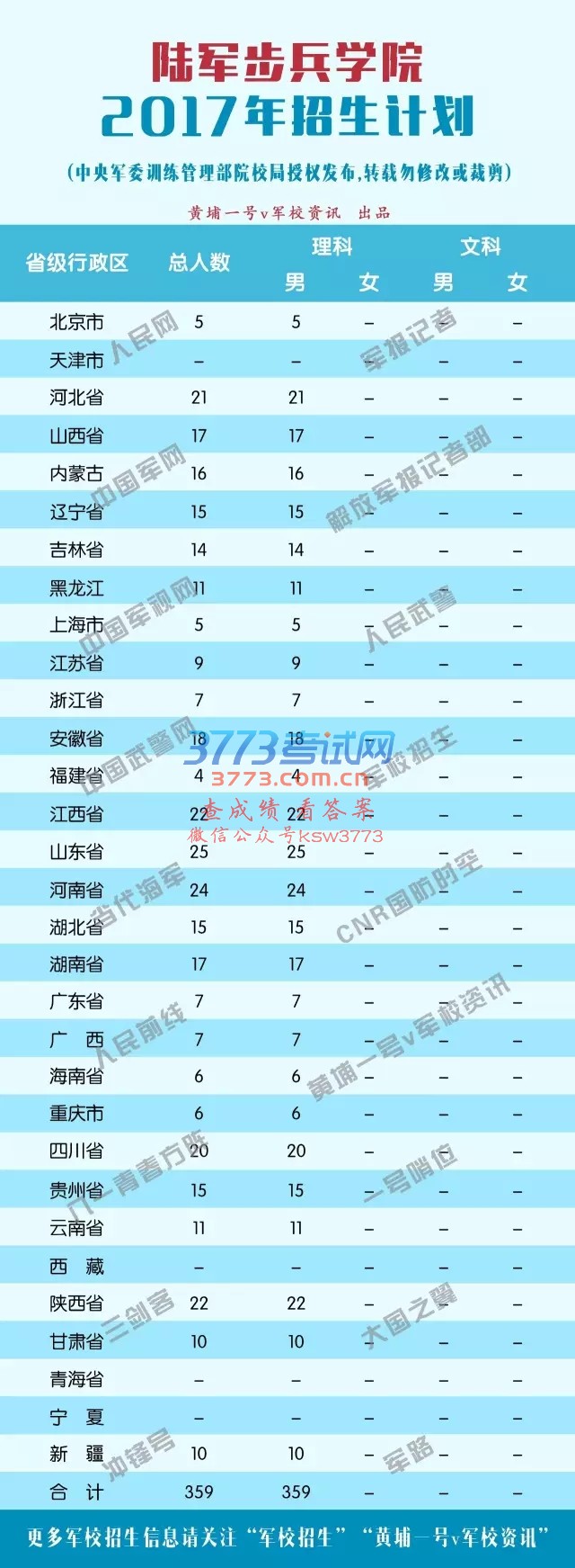 2017军校招生计划3.09万人其中高中生