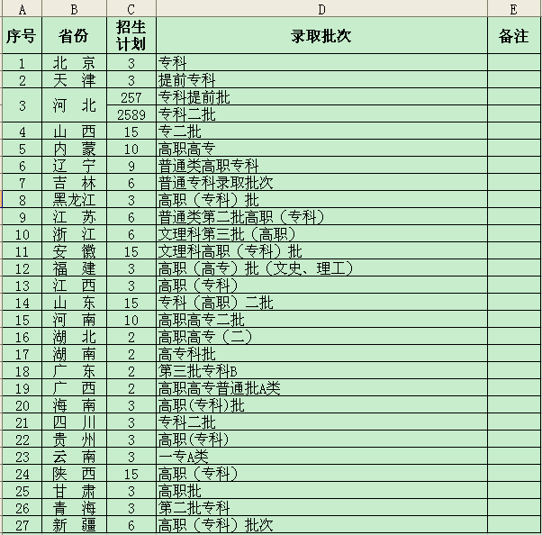 河北交通职业技术学院2009年招生省份计划及录取批次设置