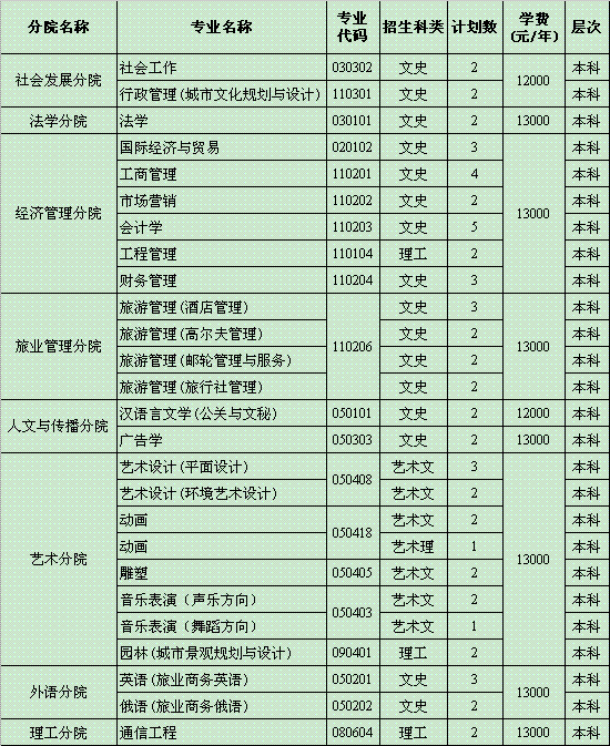 海南大学三亚学院2009年北京市分专业招生计划一览