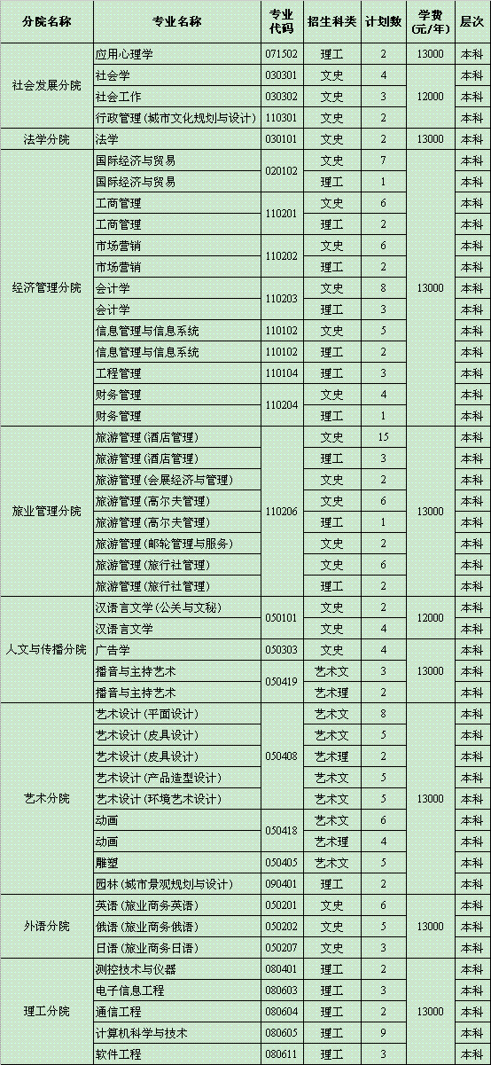 海南大学三亚学院2009年辽宁省分专业招生计划