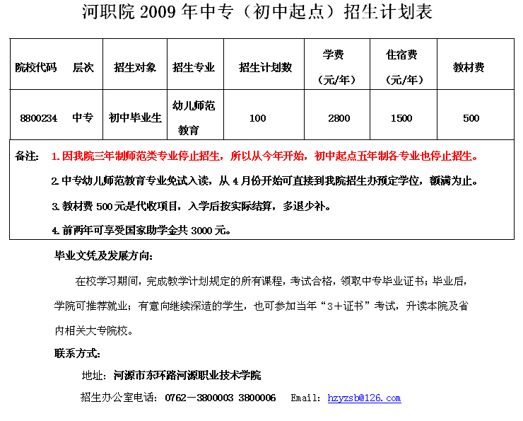 河源职业技术学院2009年中专招生