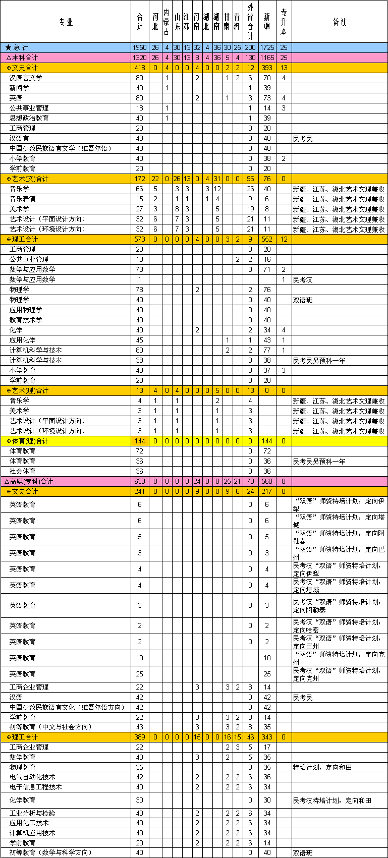 昌吉学院二〇〇九年招生计划