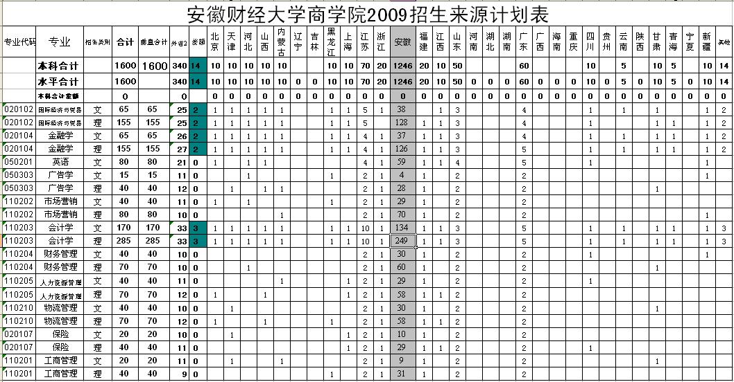 安徽财经大学商学院2009年招生计划