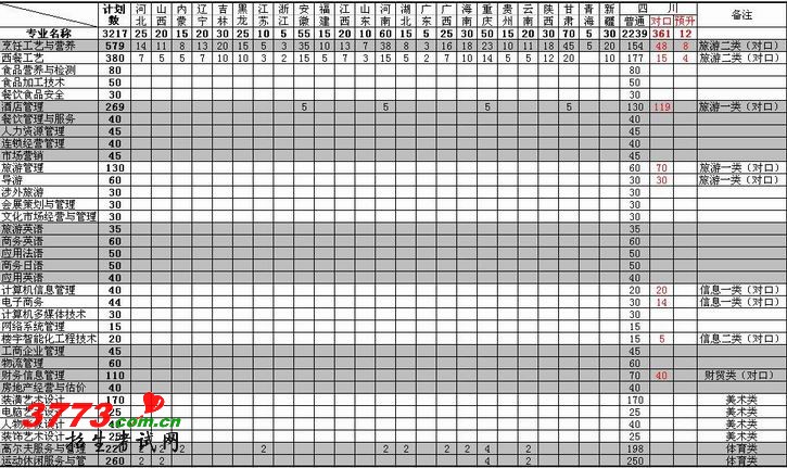 四川烹饪高等专科学校2012招生计划表