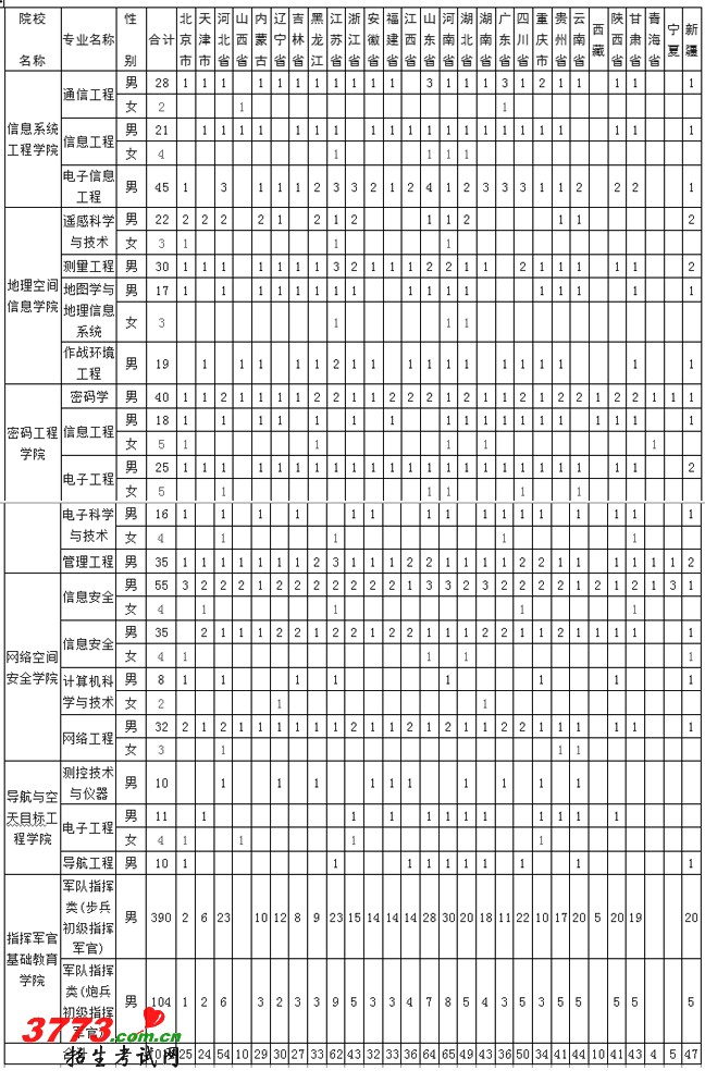 解放军信息工程大学2012年招生计划