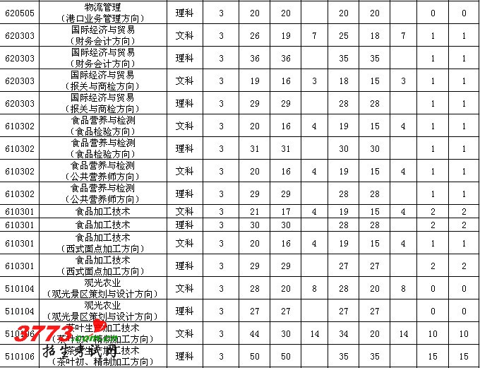 漳州科技学院2012年面向省内分专业招生计划申报表
