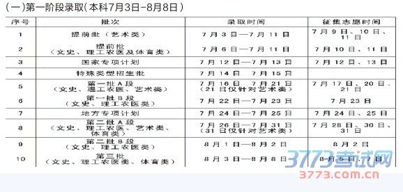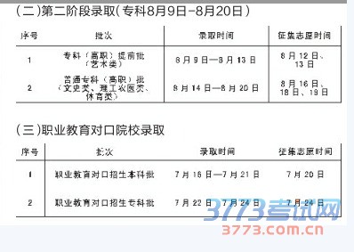 吉林省2015年普通高考录取工作7月3日开始,各阶段录取时间及征集志愿时间已经确定(具体见表格)。