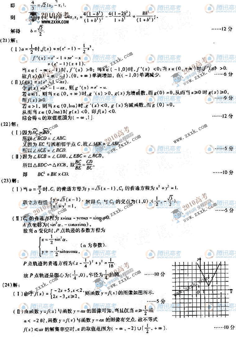 2010年宁夏吉林黑龙江高考数学文试题答案