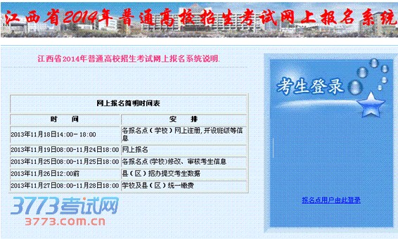 网上报名时间:2013年11月19日08:00-11月24日18:00 审核考生信息时间:11月25日8时-26日12时