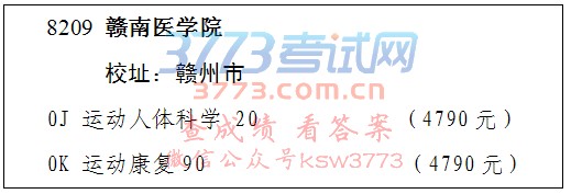 五、《高中生之友高考天地》2017年招生计划增刊上册(本科)第286页体育二本A段“8209赣南医学院”0J运动人体科学专业计划由90名调整为20名,0K运动康复专业计划由20名调整为90名。更正后信息为: