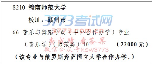 四、《高中生之友高考天地》2017年招生计划增刊上册(本科)第273页“8210赣南师范大学”音乐与舞蹈学类(中外合作办学)专业学费补登。补登后信息为: