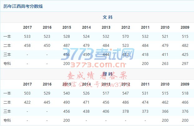 【快讯!2017江西高考分数线公布,来看看你过线了吗[给力]】刚刚!#2017江西高考# 经省高等院校招生委员会全体会议刚刚审议通过,江西省2017年普通高校招生本科录取控制分数线为:一本:文史533分,理工503分;二本:文史458分,理工422分。军校军检线:文史523分,理工493分。三校生本科489分。艺术类:提前批260分,二本274分;体育类307分。全省最高分:文史675分,理工700分。