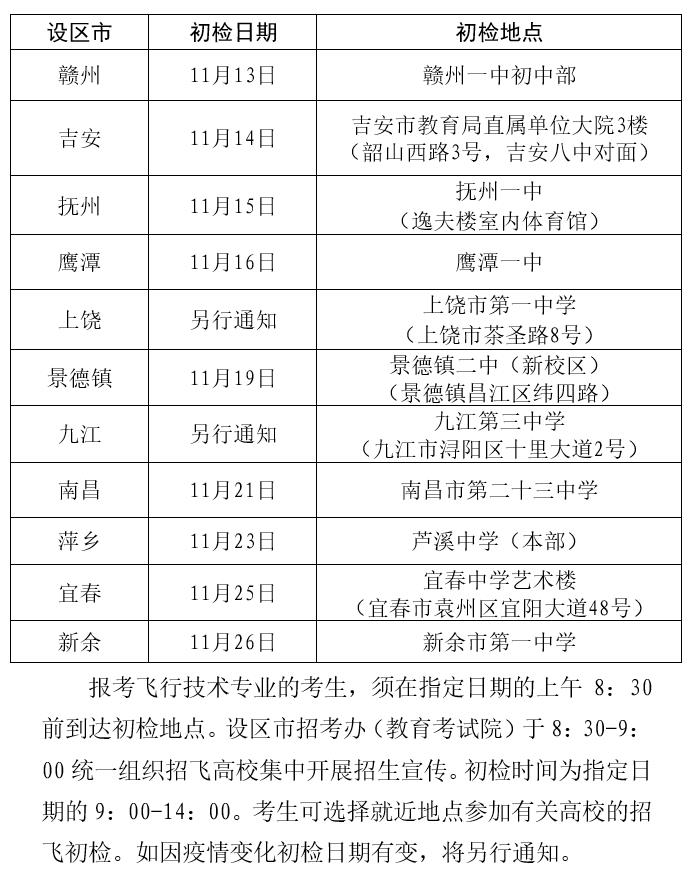 中国民航飞行学院面向江西全省招飞,学生可选择就近站点参加初检。