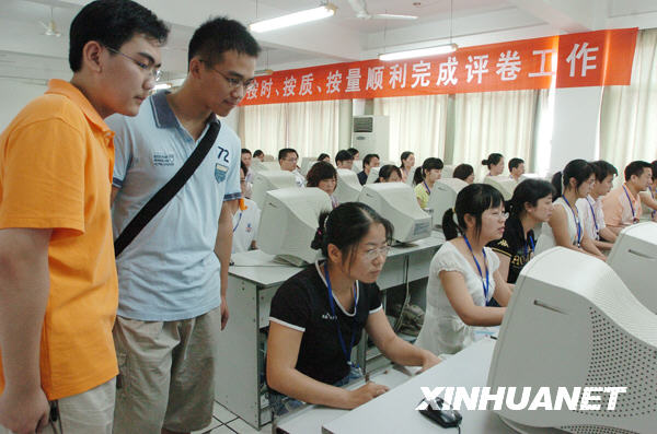 当日,江西省高招办邀请江西省部分高考考生代表和家长参观江西师范大学高考阅卷点,近距离了解高考网上阅卷流程。6月10日至20日是2009年江西高考的网上评卷时间。新华社发(朱文标 摄)