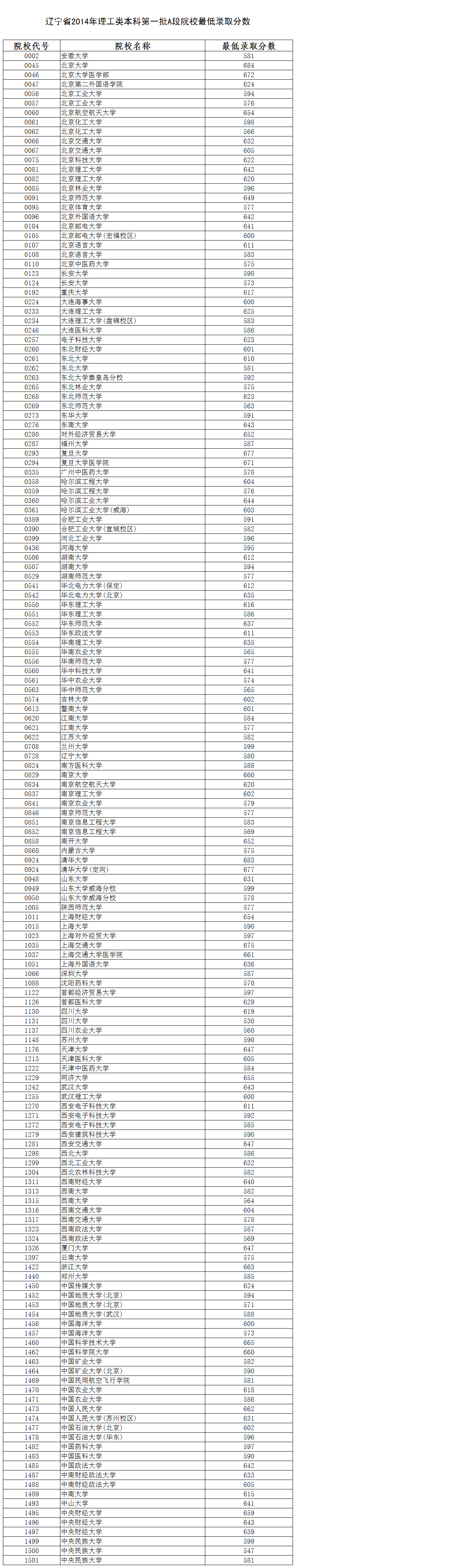 2014年7月21日辽宁艺术类一本录取可查询院校