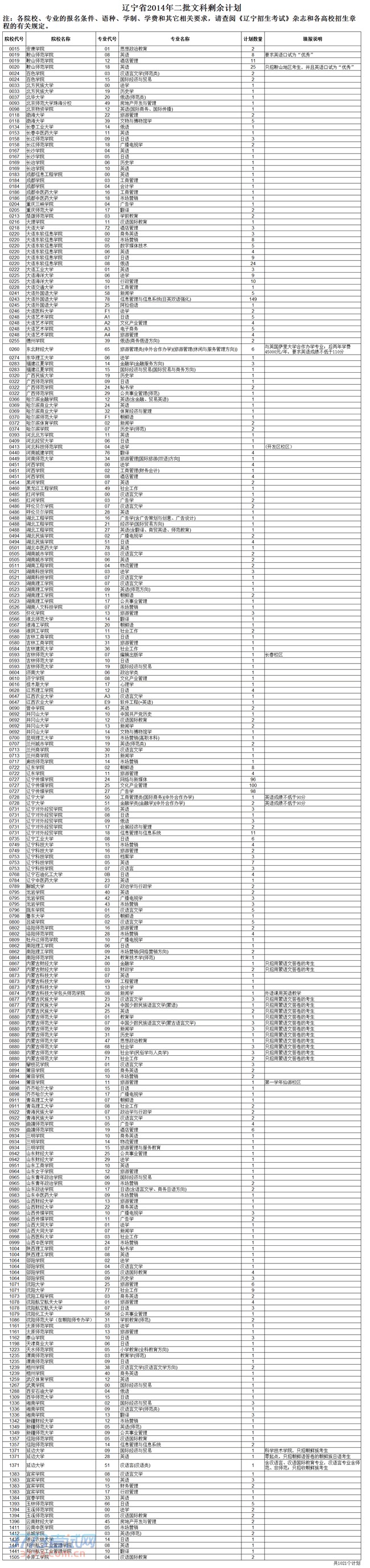 辽宁省2014年本科第二批文科剩余计划查询( )